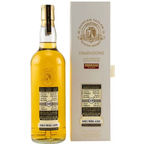 A Drumblade 10 Years Dimension Sherry Cask Straight Scotch egy izgalmas skót whisky, amelyet 10 évig érlelnek sherryhordókban, hogy gazdag és komplex ízprofilt nyújtson. Ez a whisky kiváló példája annak, hogyan hat a sherryhordós érlelés a whisky karakter