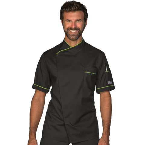 1 kép Dubai fekete rövid ujjú szakácskabát zöld paszpóllal díszítve