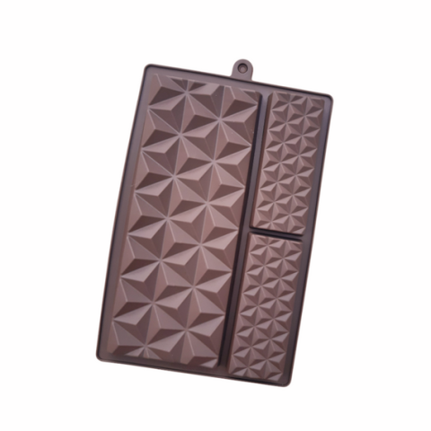 Háromszög mintával ellátott, táblás csokoládék készítésére alkalmas szilikon forma. A forma teljes mérete 24 cm x 15.5 cm x 2 cm