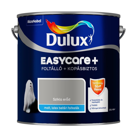 1 kép Dulux Easycare+ foltálló kopásbiztos beltéri falfesték Szikla erőd 2,5 l