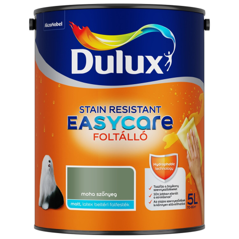DZ Easycare Moha Szőnyeg 5 l. Forradalmi víztaszító tulajdonságú beltéri falfesték. A festék egyedülálló összetételének köszönhetően a falról lepereg a víz és a legtöbb folyékony szennyeződés, amelyek így nem hatolnak mélyen a bevonatba. Rendkívül ellenálló felületet hoz létre, amelyről gyerekjáték a kosz eltávolítása.
