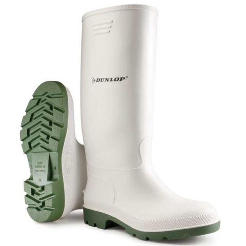 Dunlop Pricemastor csizma • fehér PVC csizma, nitril talppal, élelmiszeripari, egészségügyi felhasználásra • vegyszerek, ásványi-, állati-, növényi eredetű zsírok és olajok, vér, fertőtlenítőszerek által okozott ártalmak elleni védelem • csúszásbiztos, ha