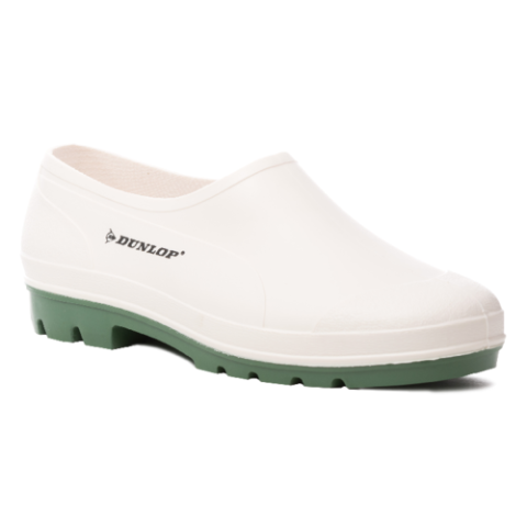 DUNLOP TYSONITE FEHÉR ÉLELMISZERIPARI PVC PAPUCS_40 Korábbi cikkszáma: GAND.957 * Zoknira húzható, fehér PVC cipők SRA csúszásbiztos, zöld PVC talppal * Ellenáll olajoknak és zsíroknak, víznek, fertőtlenítőszereknek és különféle vegyszereknek * Fehé