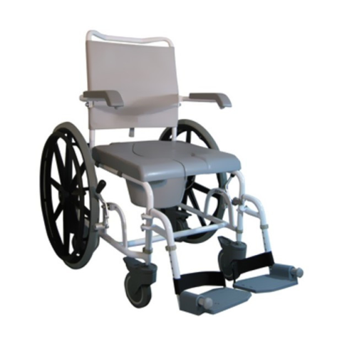pTermék leírása: Kis és nagy kerekekkel elátott tusoló- és fürdetőszék. 4 kiskerék és 2 nagykerék egyaránt tartozéka a csomagnak. A szék állítható magasságú 4 fokozatban. - puha felületü űlés alaptartozék, amely előlről nyitott a beteghez való könnyebb ho