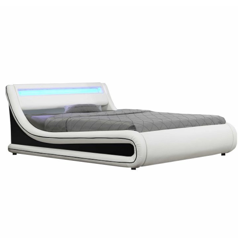 1 kép dupla ágy RGB LED világítással, fehér/fekete, 180x200, MANILA NEW