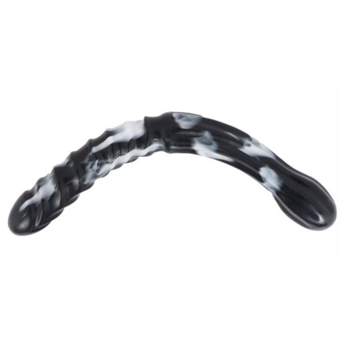 Fedezd fel a vágy világát ezzel a különleges, 42 cm-es dupla dildóval! Két különböző oldalával változatos érzéseket kínál: az egyik erősen texturált, míg a másik bordázott, mindkettő magával ragadó izgalmat nyújt. Élvezd a rugalmas szilikon kényelmét, ami
