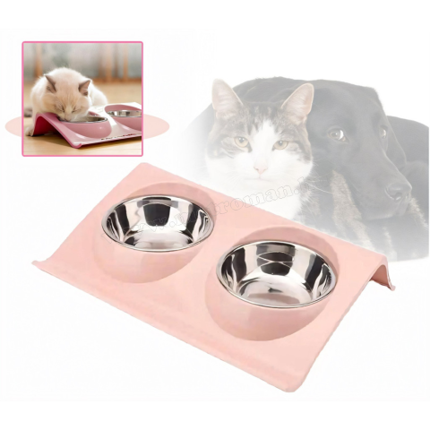 Dupla etetőtál kutyáknak macskáknak pink MDA119A