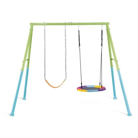 1 kép Dupla hintaszett fészekhintával és babahintával, 2,54x2,35x2m, több színű