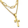 1 kép Dupla rozsdamentes acél nyaklánc arany színben, nemesacél kereszt/Jézus felirat medállal