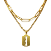 1 kép Dupla rozsdamentes acél nyaklánc arany színben, nemesacél penge medállal