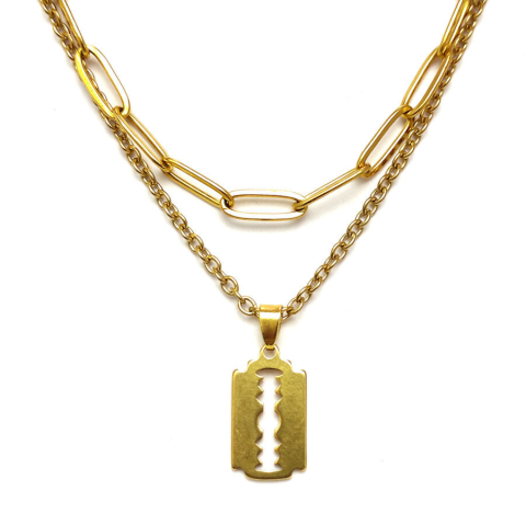 1 kép Dupla rozsdamentes acél nyaklánc arany színben, nemesacél penge medállal
