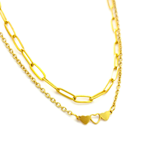 1 kép Dupla rozsdamentes acél nyaklánc arany színben, nemesacél Szív medállal