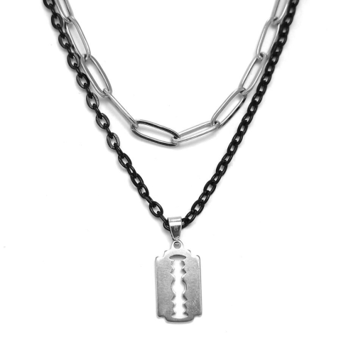 1 kép Dupla rozsdamentes acél nyaklánc ezüst-fekete színben, nemesacél penge medállal