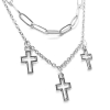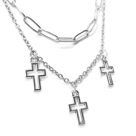 1 kép Dupla rozsdamentes acél nyaklánc ezüst színben, kereszt medálokkal