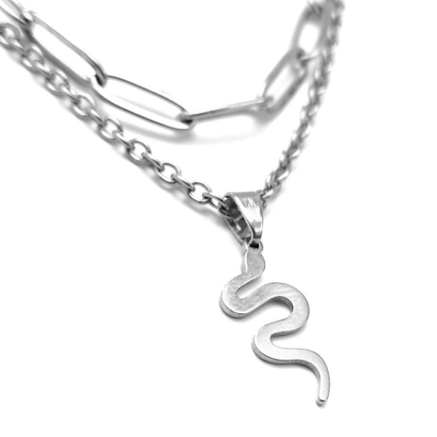 1 kép Dupla rozsdamentes acél nyaklánc ezüst színben, nemesacél kígyós medállal