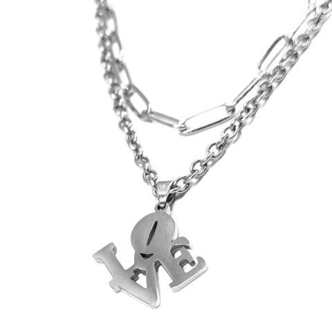 1 kép Dupla rozsdamentes acél nyaklánc ezüst színben, nemesacél LOVE medállal