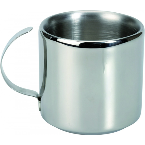 Rozsdamentes acélból készült duplafalu, hőtartó bögre, poháralátéttel.