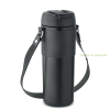 Duplafalú, rozsdamentes acél, porszórt bevonatú pohár, 2 az 1-ben ivónyílással és szívószállal ellátott PP fedéllel, PU hordozószíjjal. Szivárgásmentes. Űrtartalom: 700 ml. Méretek: Ø8X21,5CM Rendelésre: 3-10 nap! A dekoráció nem képezi az ajánlat részé