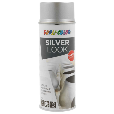Dupli-Color Silver look spray egy kiváló minőségű, rugalmas festék spray, a kopott felületek javításához, felújításához, bőr szövetekhez. Nagy hatékonyság. Nagyon jó fedőképesség. Kiváló tapadás sokféle felületen. Jó terülés, sima felület. Gyors száradás. Ellenáll a kopásnak. Kül- és beltéren is alkalmazható. Korlátozottan időjárásálló.