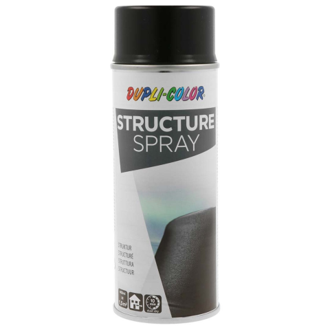 Ezzel a nagy teljesítményű lakkal különleges, érdes textúrát érhet el különféle színárnyalatokban. A Dupli-Color Structure matt fekete spray alkalmas mindenféle autóalkatrész testreszabására és a javított ill. töltött műanyag alkatrészek festésére. Lakberendezéshez és kézműves termékekhez fém, fa, üveg, kő, kerámia, karton és sok bevonható kemény műanyag számára. Nagyon jó fedőképesség. Kiváló tapadás. Gyors száradás. Kül- és beltéri használ