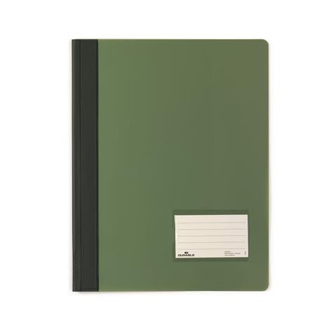 Gyorsfűző, A4, extra erős, széles, DURABLE, zöld Elegáns, áttetsző PVC gyorsfűző színes előlappal és hátlappal. -alkalmas a lyukasztott tasakok fűzésére az extra széles A4 formátumnak köszönhetően -rendkívül strapabíró, szakadásálló lefűzőszerkezet