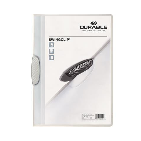 Gyorsfűző, klipes, A4, DURABLE Swingclip® 30, fehér A SWINGCLIP egy vonzó, fiatalos klipmappa, minden típusú prezentációhoz, irathoz, rugalmas polipropilénből. -egyszerű és gyors dokumentumkezelés az oldalra kihajtható műanyag klipnek köszönhetően