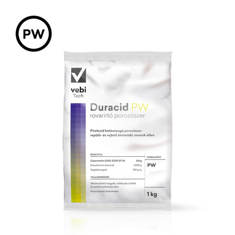 Duracid PW rovarirtó porozószer 1kg. A DURACID PW egy széles spektrumú, kombinált hatású por alakú rovarirtó és rovarriasztó szer. Újra és újra visszatérnek a bogarak? Használja a DURACID PW-t a rovarirtáshoz és hosszantartó rovarriasztáshoz! Egyszerű has