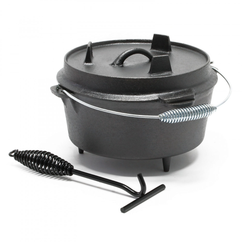 Ez a hozzáillő fedővel ellátott öntöttvas holland sütő tökéletes edény a kültéri konyhában. Akár állandó tűzrakóhelyen, akár tábortűzön, akár grillsütőn, a 8 literes főzőedénnyel a kinti ételkészítést a normál grillezésen túl is bővítheti. A Dutch Oven lá