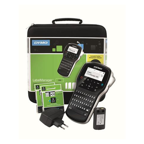 Elektromos feliratozógép, DYMO LM 280 készlet táskában A készlet tartalma: 1 LM 280 feliratozógép (QWERTY billentyűzet) 1 akkumulátor és töltő adapter 1 x D1 szalag 12 mm, fekete/fehéren, 7 m 1 x D1 szalag, 9 mm, fekete/áttetszőn, 7 m Táska 1 x H