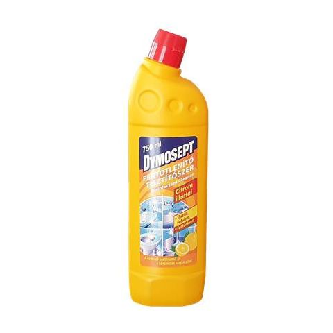 Fertőtlenítőszer, 750 ml, DYMOSEPT, citrom -hatásos, klórtartalmú fertőtlenítőszer, a kórokozó baktériumok és kellemetlen szagok ellen -mosható felületek tisztítására és fertőtlenítésére Figyelmeztetések: Bőrirritáló hatású. Súlyos szemkárosodást