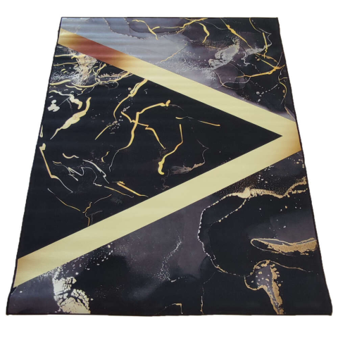 Modern Fekete-Arany Szőnyeg - Elegáns Kiegészítő Otthonodba ✨ Ez a modern fekete-arany szőnyeg tökéletes választás, ha egy stílusos és kényelmes kiegészítőt keresel otthonodba. A szőnyeg elegáns megjelenést kölcsönöz bármely helyiségnek. Főbb jellemz...