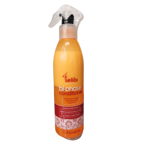 Echosline Seliár kétfázisú kondicionáló 300 ml Öbítést nem igénylő kétfázisú kondicionáló és hajerősítő spray panthenollal, ricinusolajjal, argánolajjal és napfényvédővel. Puhává és élettelivé varázsolja a hajat, védőréteget képez a hajszálakon. Használat