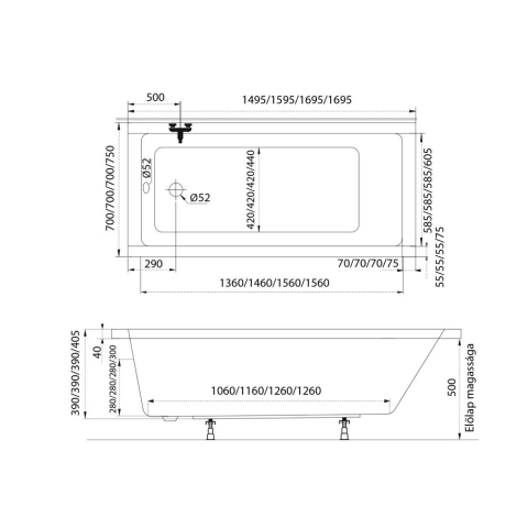 1 kép Eco egyenes akril kád 170x70