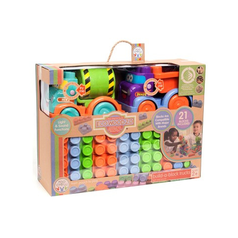 Építőkockák + építkezési járművek = órákon át tartó játék. Ráadásul a Roo Crew szettjével a gyerekek környezettudatosan építkezhetnek, ugyanis az építőelemek újrahasznosított anyagokból készültek. A csomagban egy teherautó és egy mixerkocsi található, melyek mókás hangokat adnak ki az élethűbb játék kedvéért. A játék remekül fejleszti a szem-kéz koordinációt, a logikus gondolkodást és a finommotorikát. Csomagolás méretei: 31 x 14 x 42 cm A Roo