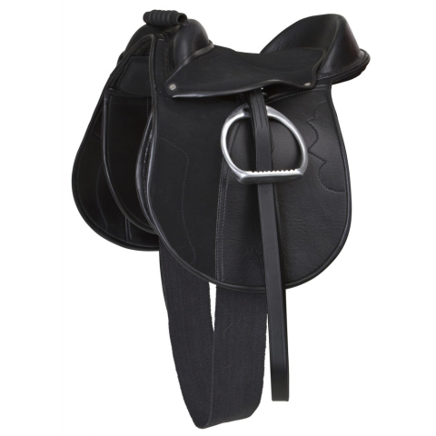 Economy póni nyeregszett 110 cm hevederrel: Komplett, fekete színű póni nyeregszett szintetikus anyagból, csúszásgátló ülőfelülettel és levehető térdtámaszokkal. Ideális kezdő lovasok számára. Kengyel anyaga: műanyag Economy póni nyeregsz