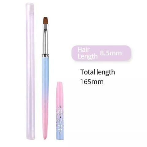 Zselés ecset lapos szögletes élű sörtével Teljes hossz: 16,5 cm Sörte hossz: 0,85 cm Az ecsetet védő strasszos kupakkal.