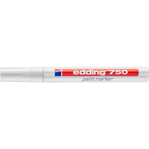 Lakkmarker, 2-4 mm, EDDING 750, fehér - üveg, porcelán, műanyag, fém, illetve szinte minden felület feliratozására, jelölésére alkalmas - kerekített hegy - fém test - permanent, lakkszerűen fedő festékkel töltve - gyorsan száradó festék, írásképe törlé