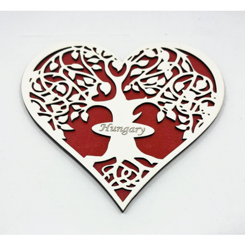 Életfa mintázatú, szív alakú ,Hungary felírattal, több színben kapható.