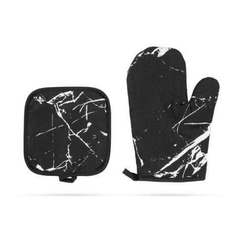 1 kép Edényfogó kesztyű és alátét szett - 25 cm Fekete márvány mintás
