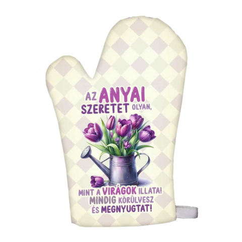 Mérete: 16 x 26 cm A fogó része hőálló anyaggal van bevonva. Edényfogó kesztyű, Az anyai szeretet olyan, mint a virágok illata. Mindig körülvesz és megnyugtat. Praktikus ajándék az edényfogó kesztyű olyanoknak, akik szeretnek a konyhában sütni-főzni, a