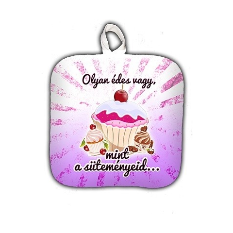 Mérete: 19 x 22 cm. Hátoldala hőálló anyaggal van bevonva. Edényfogó, Olyan édes vagy, mint a süteményeid Praktikus ajándék az edényfogó olyanoknak, akik szeretnek a konyhában sütni-főzni, a kertben grillezni. Ajánljuk bármilyen alkalomra, vagy saját