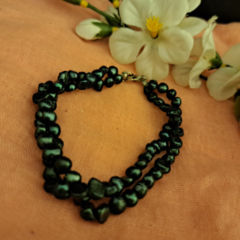 1 kép Édesvízi gyöngy karkötő, két soros grafit gyöngyház.