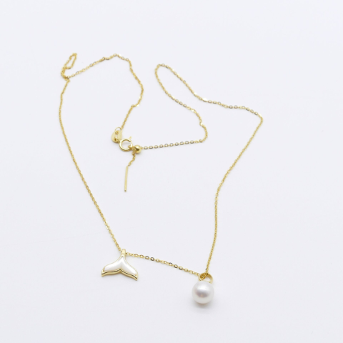Elegáns édesvízi gyöngy nyaklánc sellőfarok medállal ✨ Ez a finom és nőies nyaklánc tökéletes választás, ha egy kis tengerparti eleganciát szeretnél csempészni a megjelenésedbe. A 7-8 mm-es édesvízi gyöngyök és a csillogó opálberakásos sellőfarok med...
