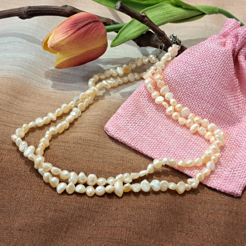 Amorf édesvízi gyöngy, természetes és elegáns.Hosszúság: 44 cmSzélesség: 2 x 0,4 cm