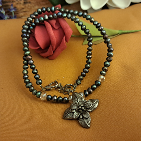Édesvízi tenyésztett gyöngy nyakék, természetes amorf gyöngyök. Elegancia és finomság.Szélesség: 0,3 cm.Hosszúság 42 cm