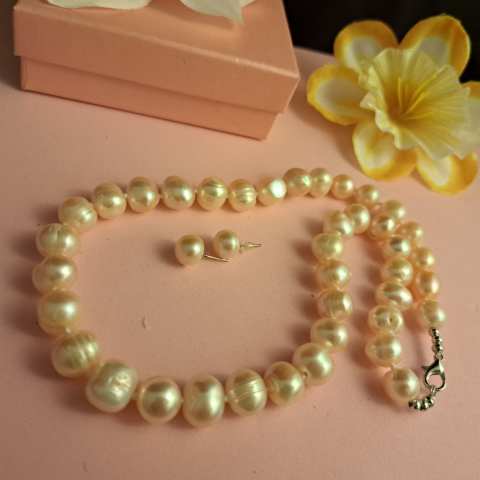 1 kép Édesvízi Tenyésztett gyöngy nyaklánc + fülbevaló