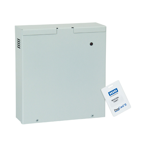 2 ajtós önálló beléptető-vezérlő fémdobozzal, 200 felhasználóhoz A beléptető-vezérlő főbb jellemzői Mikroprocesszor vezérelt áramkör. 2 HID Wiegand 26-bit Proximity kártyaolvasó bemenet. Olvasási frekvencia: 125 kHz. 2 NO kontaktusú, feszültségmentes relé kimenet. 2 NO kontaktusú, ajtónyitó nyomógomb bemenet. 200 felhasználó. HID MagicProx vagy azzal kompatibilis kártyával használható. Programozás mester kártyával és számítógépen kere