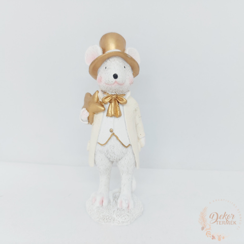 Méret: 5x4x14,5 cm Szín: arany-fehér Anyag: poly Tömeg: 128 gramm Karácsonyi egér figura a karácsonyi dekorációkhoz, asztaldíszekhez, kopogtatókhoz, adventi koszorúkhoz. Csupán ragasztópisztoly szükséges a rögzítéséhez. A karácsonyi egér figurához ill