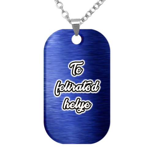 1 kép Egyedi feliratos, rozsdamentes fém dögcédula, kék színben (láncra vagy kulcstartóra)
