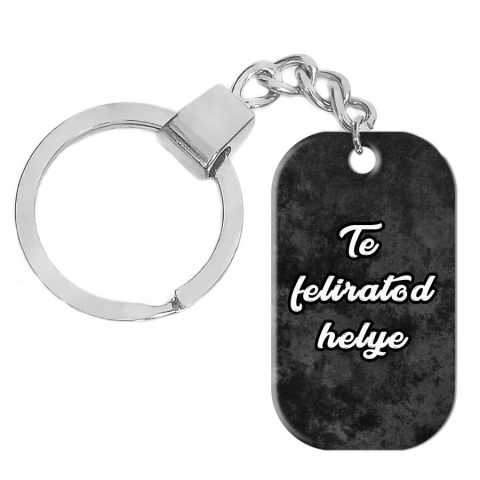 Egyedi feliratos, rozsdamentes fém dögcédula kulcstartó, márványfekete színben